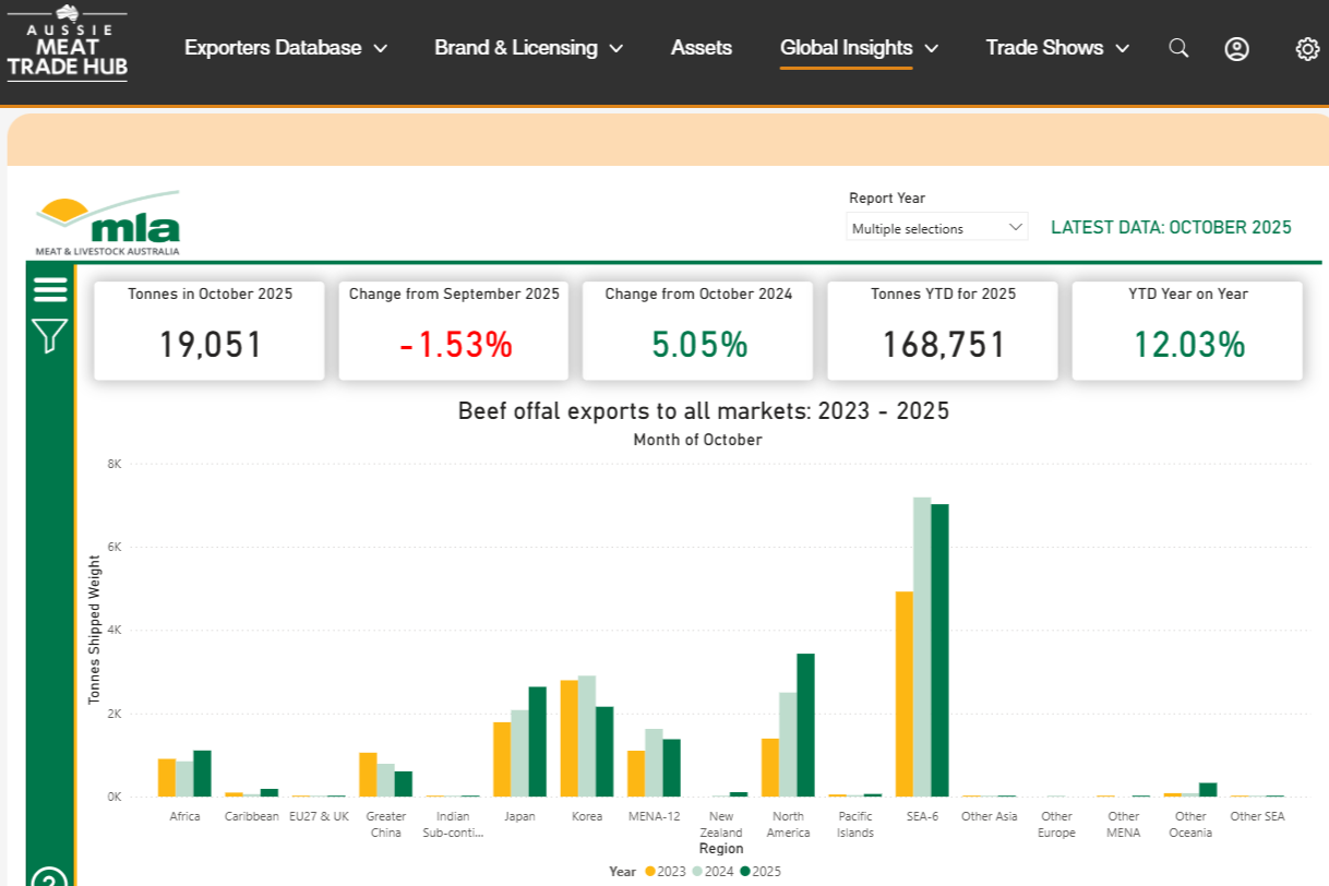 Australian grainfed beef is reaching record global demand. Use our Australian beef export dashboard to deep dive into where and how it’s growing.
